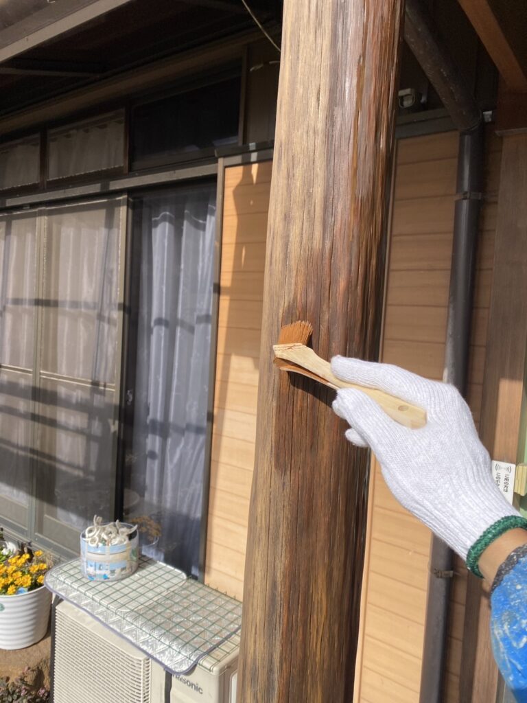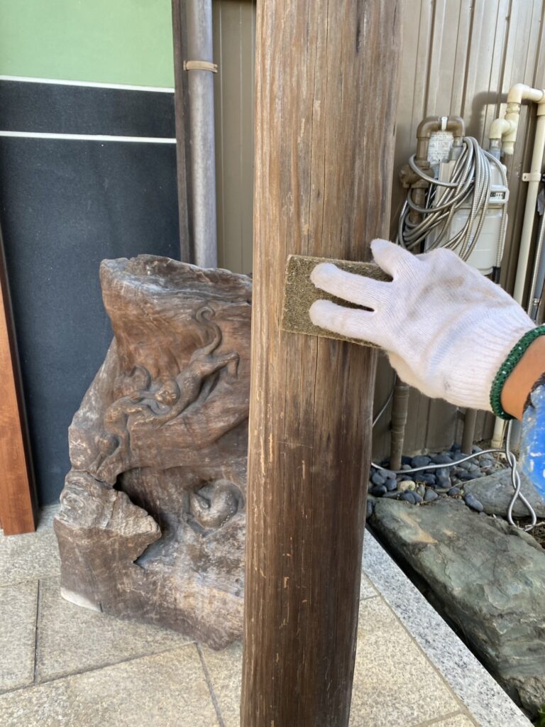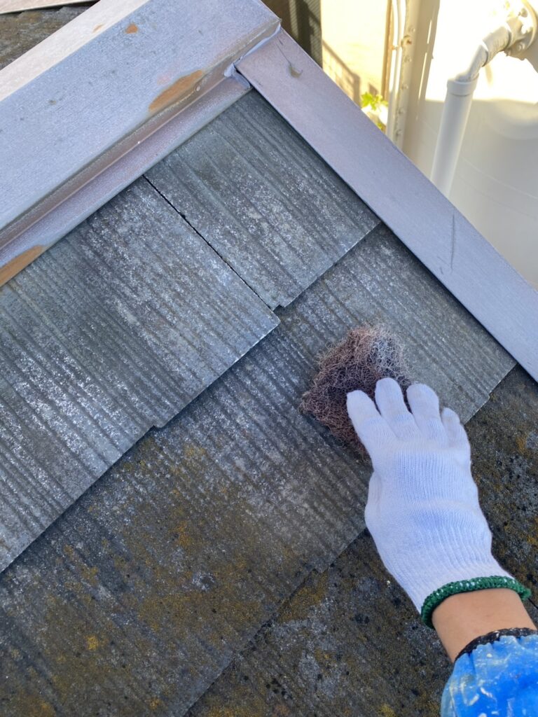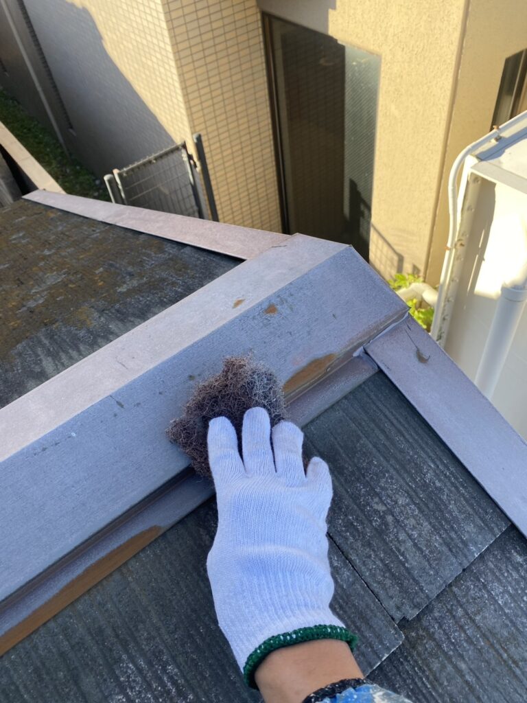 高圧洗浄が出来ないため、ケレンにて下地処理