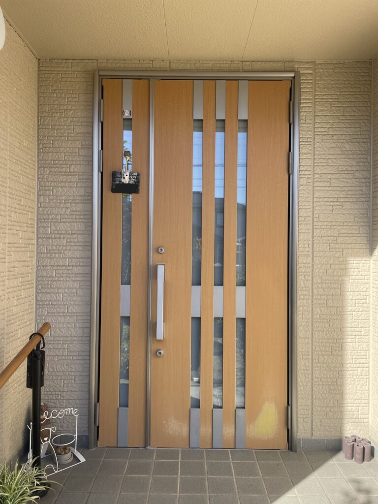 玄関ドアの交換は、写真のようにカバー工法といわれる施工方法で行うので