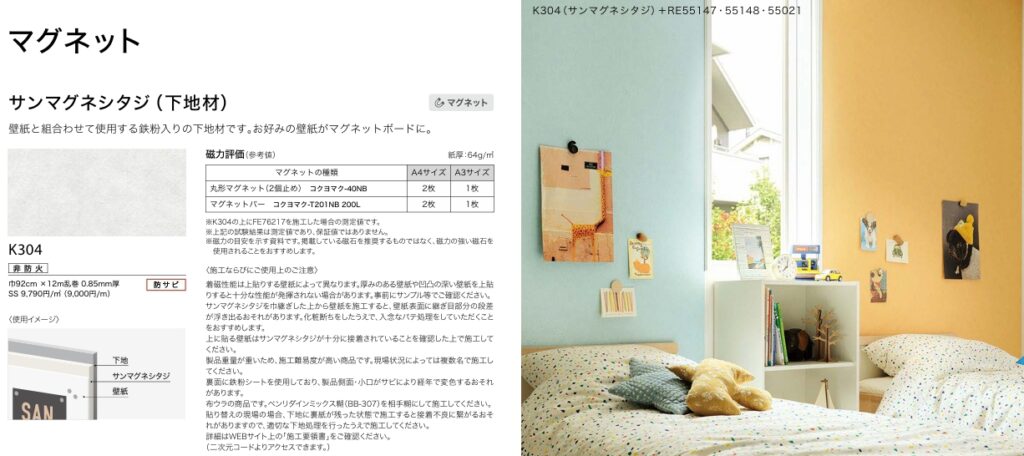 クロスを貼る前に施工することで、クロスの上からマグネットで紙を貼れるように